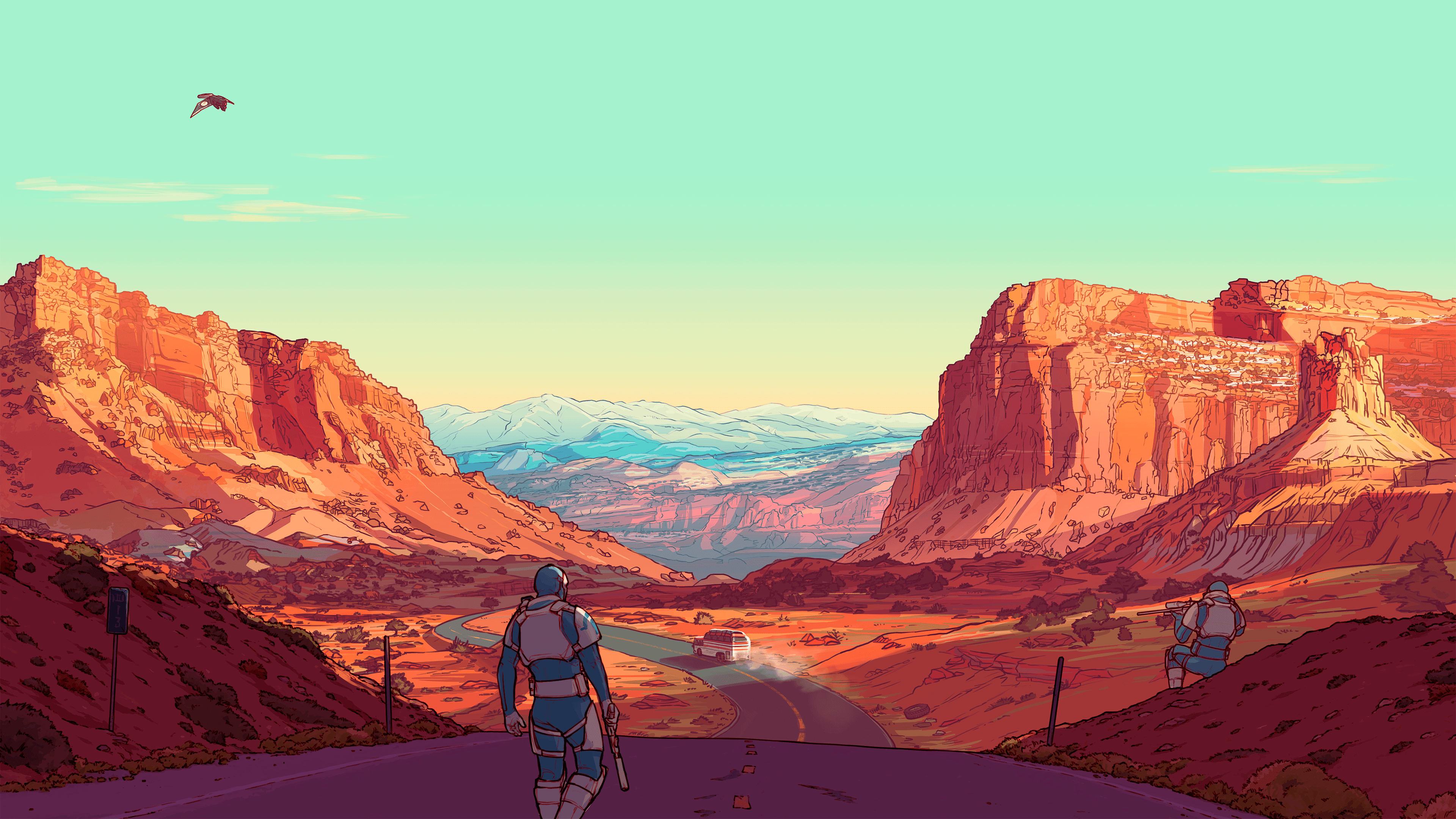 On the road across an alternate history America, you'll stop at iconic locations, take on unexpected assignments, meet a colorful cast of characters, enlist new crew members, and evade (or fight) your pursuers.